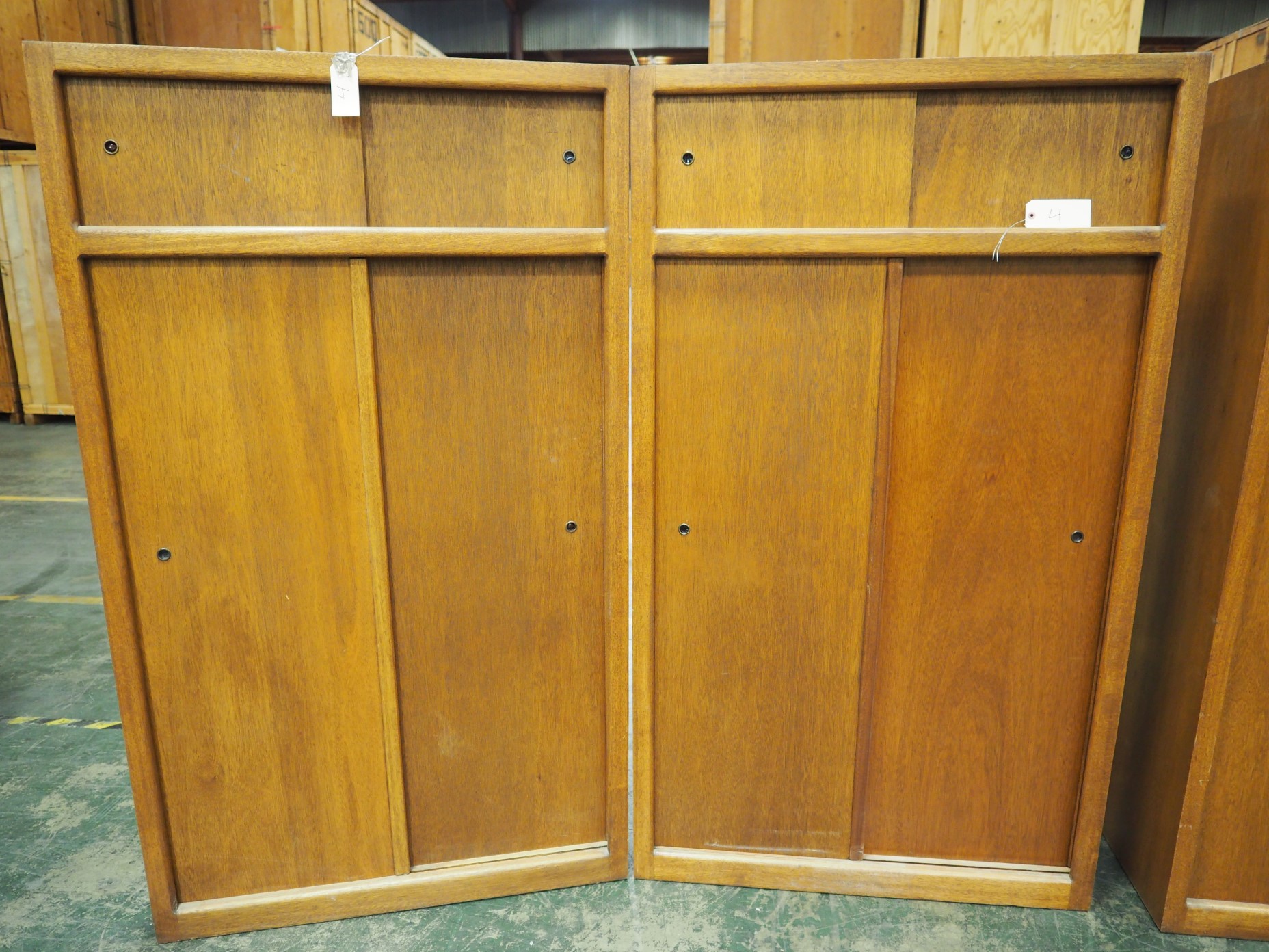 Set Of 2 Mid Century Modern Wood Cabinets With Shelves Sliding Doors Cws Asset Management And Sales